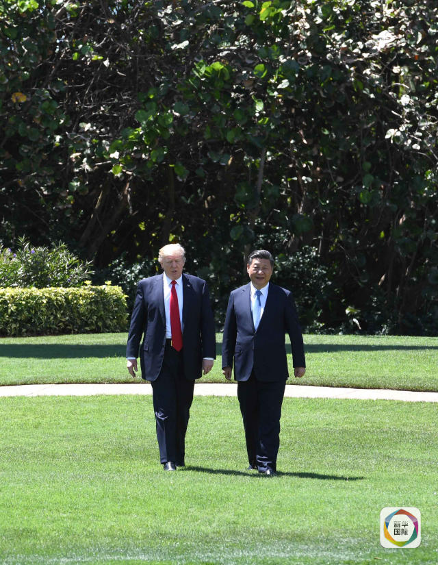 當地時間4月7日,國家主席習近平在美國佛羅里達州海湖莊園同美國總統特朗普舉行中美元首第二場正式會晤。會晤后,習近平同特朗普到秀麗宜人的海湖莊園中散步,在輕松友好的氣氛中繼續就兩國友好合作進行討論。(新華社記者饒愛民攝)