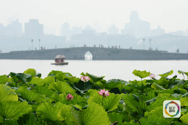 (圖為游客在西湖白堤錦帶橋參觀游覽)