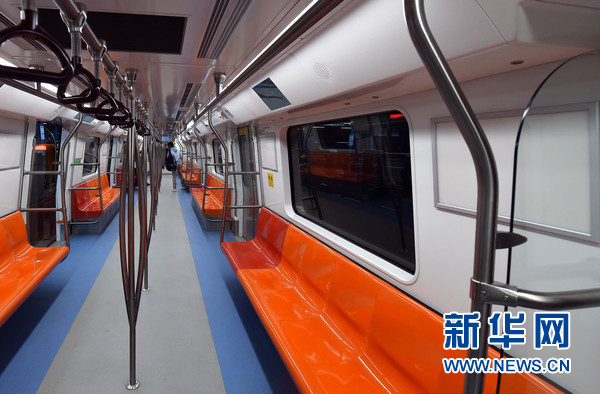 12月25日,在印度首都新德里洋紅色地鐵線,列車(chē)車(chē)廂干凈整潔。當(dāng)日,連接新德里及其衛(wèi)星城諾伊達(dá)(Noida)之間的洋紅色地鐵線建成通車(chē)。這條線路全長(zhǎng)12.64公里。德里地鐵公司計(jì)劃未來(lái)提高這條地鐵線路自動(dòng)化水平,以“無(wú)人值守模式”運(yùn)行。目前,新德里運(yùn)營(yíng)地鐵線路共有7條,分別用顏色命名,包括紅色、黃色、藍(lán)色、綠色、橙色、紫羅蘭和洋紅色。新華網(wǎng)發(fā) (張迺杰 攝)