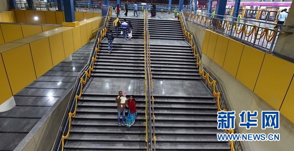12月25日,在印度首都新德里洋紅色地鐵線,人們站在站臺臺階上駐足留影。當(dāng)日,連接新德里及其衛(wèi)星城諾伊達(dá)(Noida)之間的洋紅色地鐵線建成通車。這條線路全長12.64公里。德里地鐵公司計劃未來提高這條地鐵線路自動化水平,以“無人值守模式”運(yùn)行。目前,新德里運(yùn)營地鐵線路共有7條,分別用顏色命名,包括紅色、黃色、藍(lán)色、綠色、橙色、紫羅蘭和洋紅色。新華網(wǎng)發(fā) (張迺杰 攝)