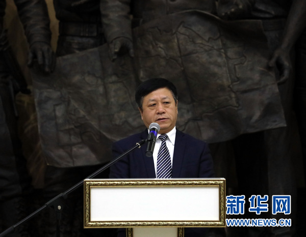 中國駐哈薩克斯坦大使張漢暉在圖片展開幕式上致辭。新華網發