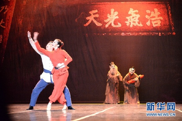1月23日,北京舞蹈學(xué)院的舞蹈演員在克羅地亞首都薩格勒布國家劇院演出舞劇《儺·情》。新華網(wǎng)發(fā) 高磊攝