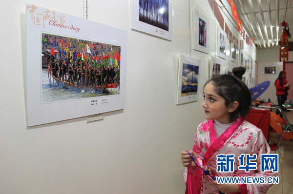 一名學生在欣賞“中國故事”圖片展。新華網發(李良勇攝)