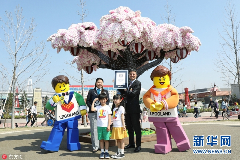 當(dāng)?shù)貢r(shí)間2018年3月28日,日本名古屋,日本樂(lè)高樂(lè)園主題公園用樂(lè)高積木堆出一棵櫻花樹(shù),被吉尼斯世界紀(jì)錄認(rèn)證為世界最高的樂(lè)高櫻花樹(shù)。(圖片來(lái)源:東方IC)