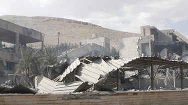 在敘利亞首都大馬士革東北部的拜爾宰區,一處科研中心成為14日凌晨美英法軍事打擊敘利亞的目標之一。襲擊發生后,記者看到成片的建筑已淪為廢墟。2018-04-15 11:47:02