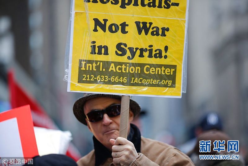 美國民眾舉行反戰游行 抗議美英法聯軍襲擊敘利亞