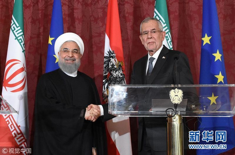 2018年7月4日,奧地利維也納,伊朗總統(tǒng)魯哈尼抵達(dá)奧地利進(jìn)行訪問,會晤奧地利總統(tǒng)范德貝倫。伊朗總統(tǒng)魯哈尼2日出發(fā)前往瑞士和奧地利訪問。他這次西歐行將重點討論伊朗核問題全面協(xié)議。(圖片來源:視覺中國)