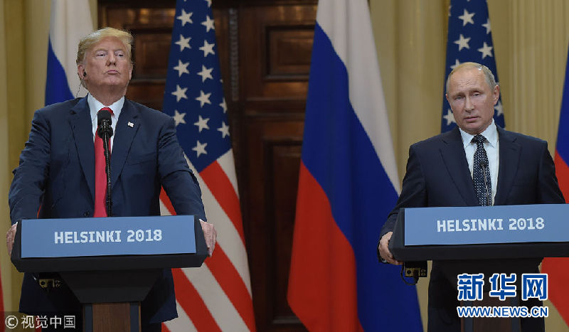 當地時間2018年7月16日,芬蘭赫爾辛基,美國總統特朗普與俄羅斯總統普京出席聯合新聞發布會。(圖片來源:視覺中國)