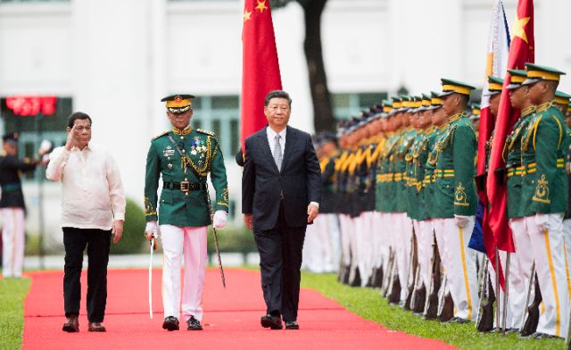 11月20日,國家主席習近平在馬尼拉同菲律賓總統杜特爾特舉行會談。會談開始前,習近平出席杜特爾特在總統府前草坪舉行的隆重歡迎儀式。新華社記者丁林攝
