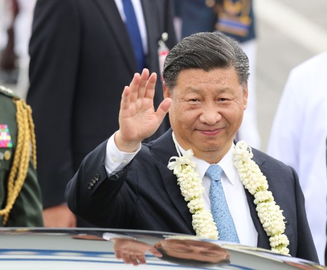 當地時間近午時,習近平步出專機艙門,菲律賓政府高級官員在舷梯旁熱情迎接,軍樂隊奏迎賓曲。習主席代表中國政府和中國人民向菲律賓政府和人民致以誠摯問候和良好祝愿。