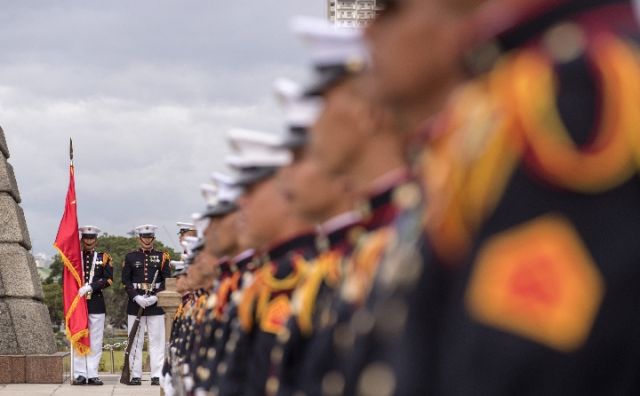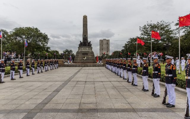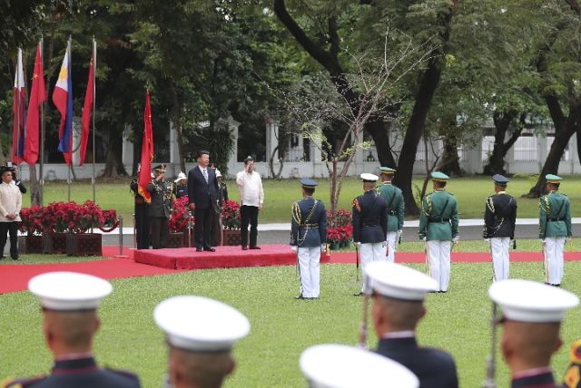 杜特爾特為習主席在總統府前草坪舉行了隆重歡迎儀式。習近平在杜特爾特陪同下檢閱儀仗隊。