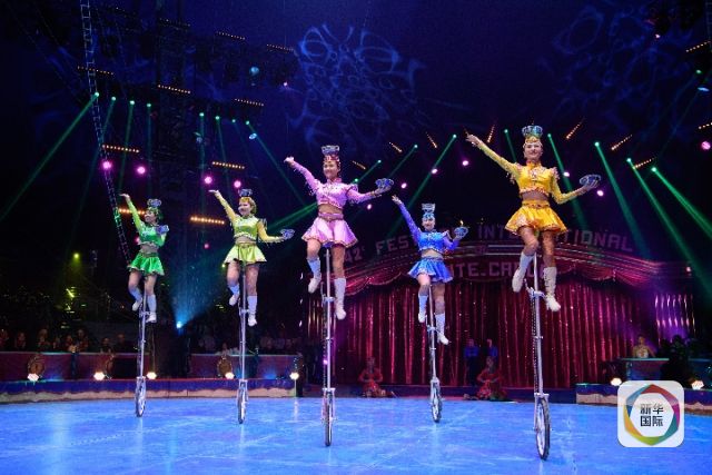 2018年1月19日,來自內蒙古民族藝術劇院雜技團的演員在摩納哥蒙特卡洛馬戲節上表演《五人踢碗》。新華社記者 陳益宸 攝