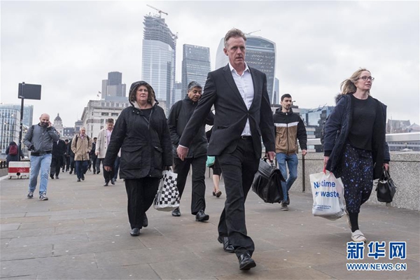 這是3月6日,在英國倫敦,人們從通往金融城的倫敦橋上經(jīng)過。 新華社發(fā)(史蒂芬·程 攝)