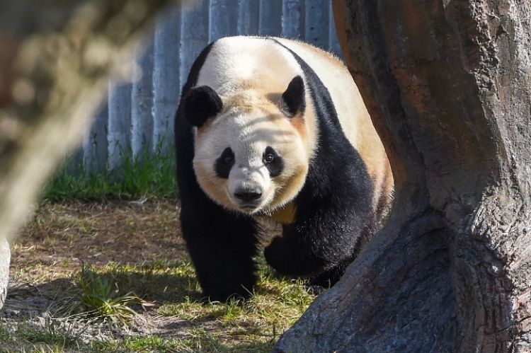 這是4月10日在丹麥哥本哈根動物園熊貓館拍攝的大熊貓“星二”。(新華社記者 郭晨 攝)