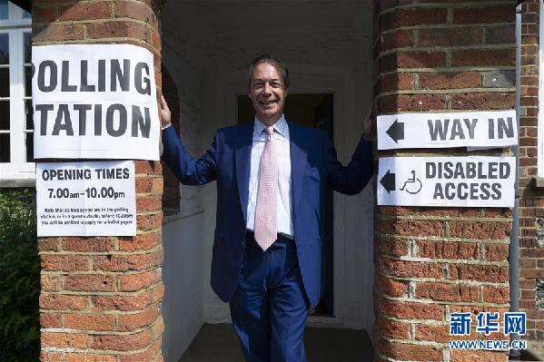 5月23日,在英國比金希爾,“脫歐黨”領袖奈杰爾·法拉奇在投票后離開。五年一次的歐洲議會選舉于5月23日至26日舉行。新華社發(雷伊·唐攝)