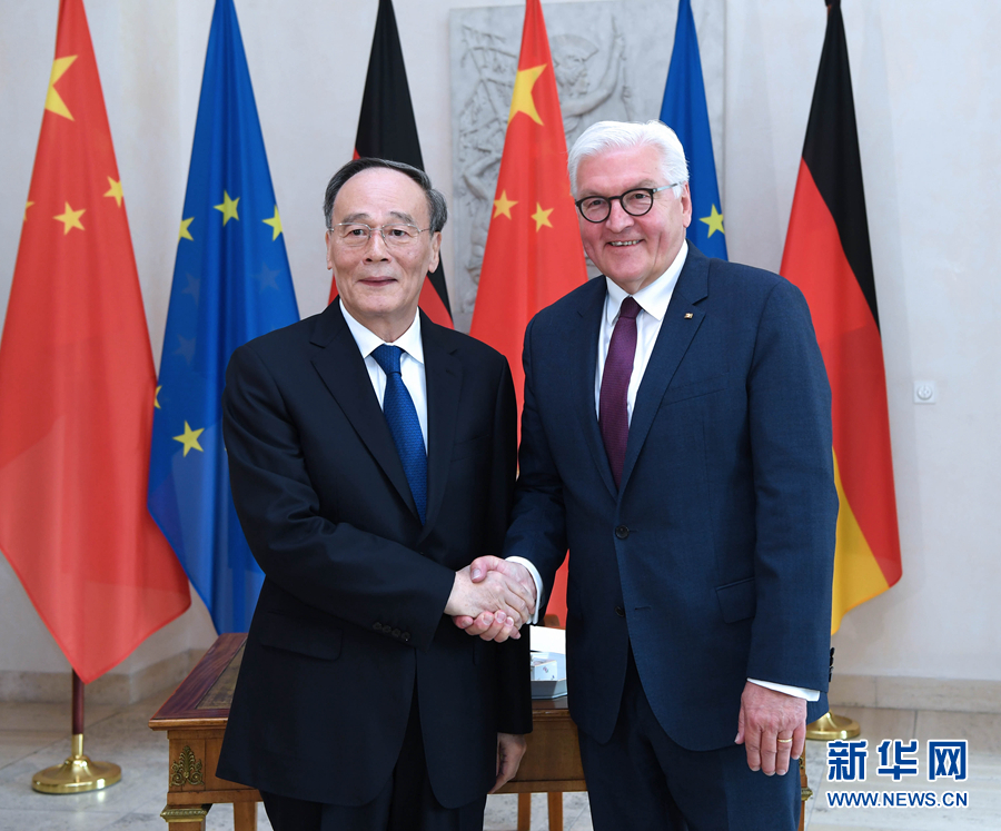 新華社柏林6月2日電(記者李忠發 張遠 沈忠浩)應德國聯邦政府邀請,國家副主席王岐山當地時間5月30日至6月2日訪問德國,在柏林分別會見施泰因邁爾總統、默克爾總理和馬斯外長。