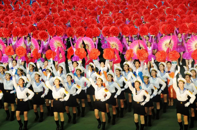 為紀念金日成誕辰90周年和金正日誕辰60周年,大型團體操和藝術表演《阿里郎》于2002年進行了首演,連續演出10年。