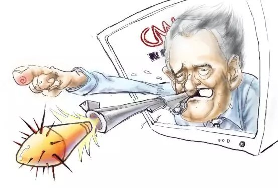 2008年4月,美國有線電視新聞網(CNN)主持人卡弗蒂發表辱華言論,圖為當時諷刺他的漫畫。