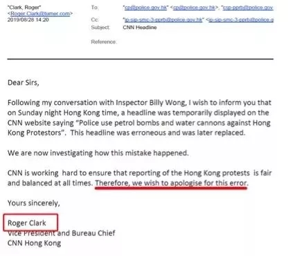 CNN就造謠“港警使用汽油彈”錯誤報道向香港警察致歉,在致歉信中CNN還表示”正在努力確保對香港抗議活動的報道在任何時候都是公平和平衡的”。