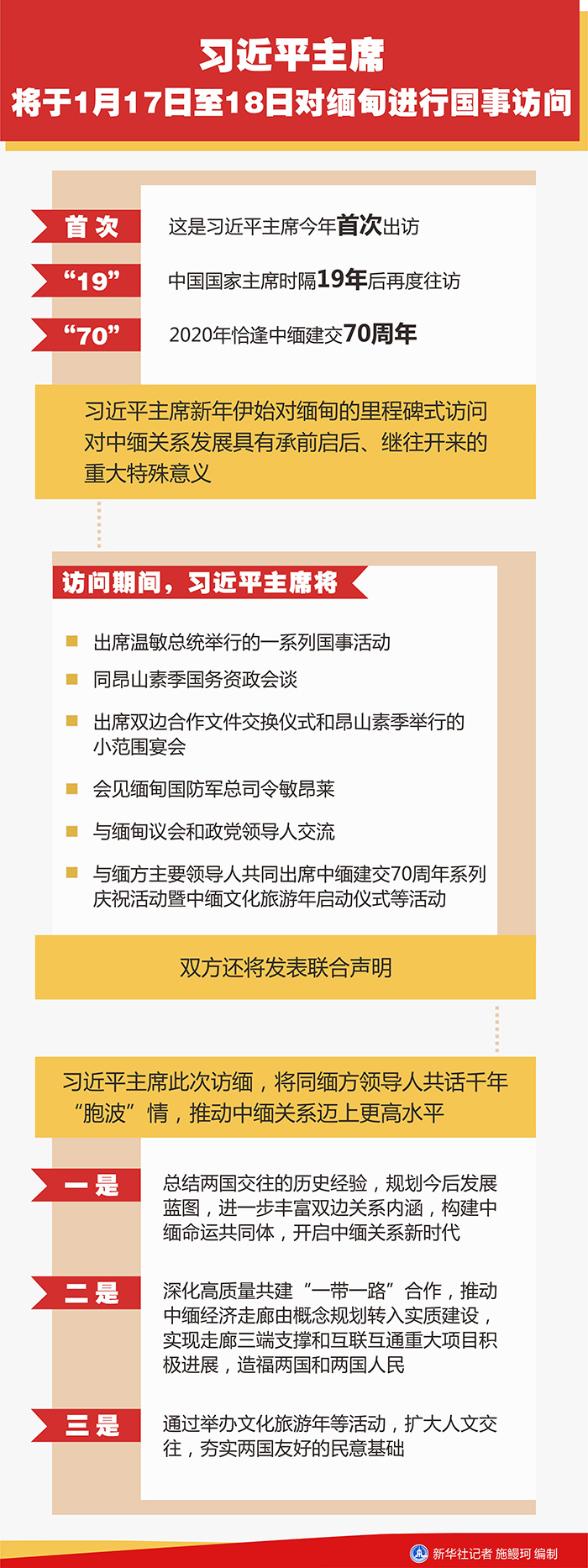 羅照輝表示,應溫敏總統邀請,習近平主席將于1月17日至18日對緬甸進行國事訪問。這是習近平主席今年首次出訪,是中國國家主席時隔19年后再度往訪,又恰逢中緬建交70周年,對中緬關系發展具有承前啟后、繼往開來的重大特殊意義。緬甸是中國友好鄰邦。當前,兩國政治上高度互信,經濟上深度合作,國際地區問題上密切配合,“胞波”情誼歷久彌新,民間往來高位運行。建交70年來,中緬關系在互尊、互信、互助的基礎上不斷發展,樹立了大小國家間和睦相處、合作共贏的典范。中方堅持不干涉緬內政,堅定支持緬甸維護國家尊嚴和合法權益。在緬甸國內和平和解問題上,中方勸和促談,發揮建設性作用。緬方在涉及臺灣、西藏、新疆問題上一直堅定支持中方。緬甸積極響應和參與“一帶一路”合作倡議。中緬經濟走廊及大項目合作帶動了緬方沿線就業和經濟發展,極大提升了當地人民生活水平。中緬堅持踐行和平共處五項原則,堅持國際關系基本準則,支持多邊主義、維護自由貿易,共同為推動建立公正合理的新型國際關系作出貢獻。雙方在聯合國、東亞合作等場合相互支持,在建立中國-東盟自貿區,區域全面經濟伙伴關系、“南海行為準則”磋商等方面密切協調配合。