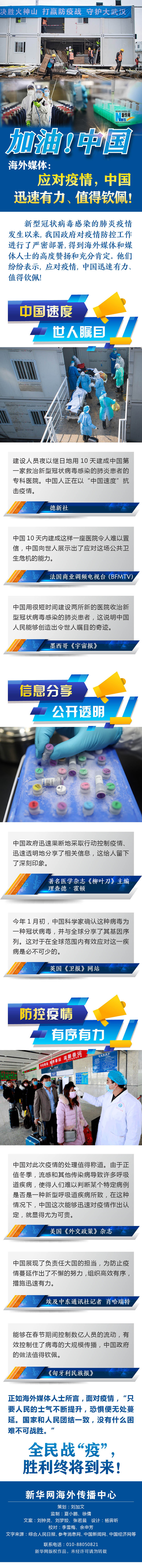 【加油!中國】海外媒體:應(yīng)對疫情,中國迅速有力、值得欽佩!