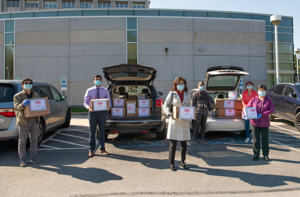 2020年4月6日,在美國馬里蘭州貝塞斯達,“華人支援醫(yī)院”的成員準備將一批醫(yī)療物資捐獻給當?shù)匾患裔t(yī)院。(新華社發(fā))