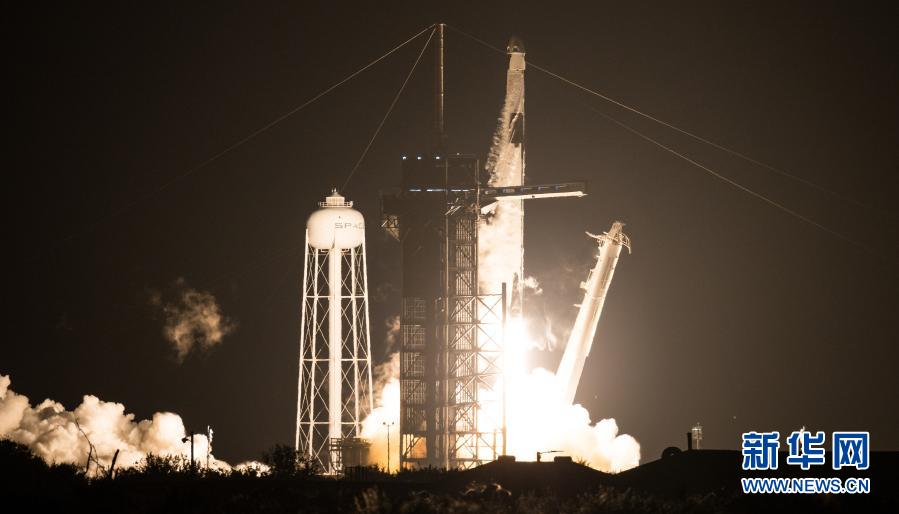 11月15日,搭載4名宇航員的美國太空探索技術公司“龍”飛船由一枚“獵鷹9”火箭從美國佛羅里達州肯尼迪航天中心發射升空?!⌒氯A社發(美國航天局供圖)
