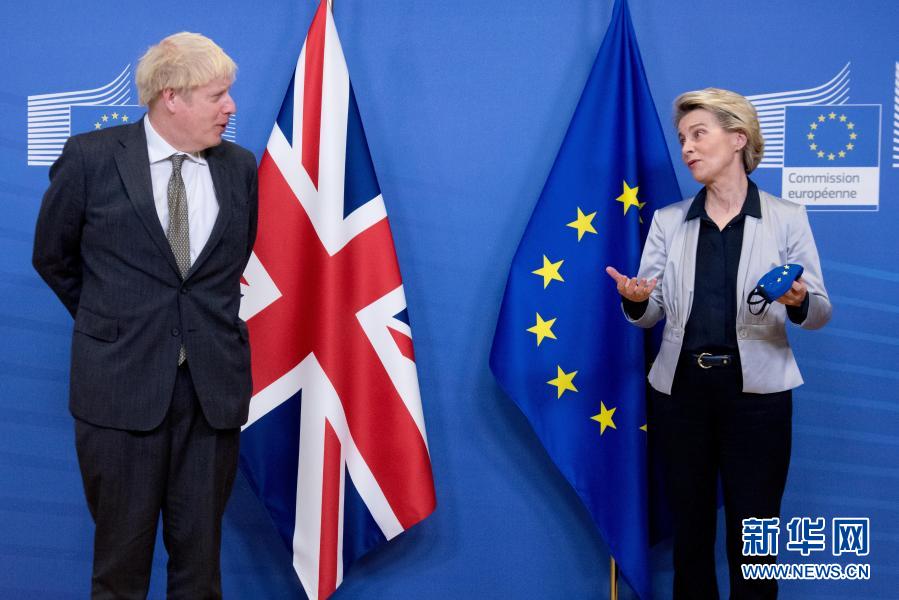 2020年12月9日,英國(guó)首相約翰遜(左)與歐盟委員會(huì)主席馮德萊恩抵達(dá)比利時(shí)布魯塞爾的歐盟總部,準(zhǔn)備進(jìn)行會(huì)晤。新華社發(fā)(歐盟供圖)