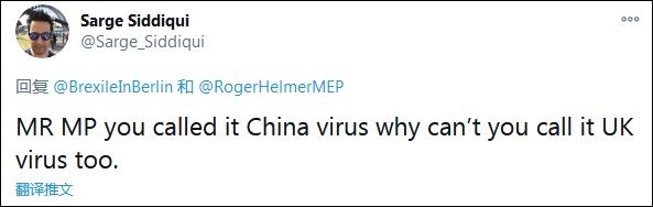 不少網友指出了赫爾默的雙標。“議員先生,你管這(新冠病毒)叫‘中國病毒’,為什么不也把它叫做英國病毒?”