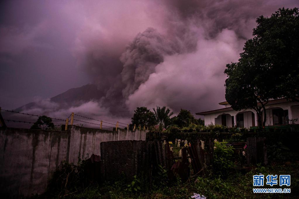 5月13日,印度尼西亞北蘇門答臘省錫納朋火山噴發火山灰。