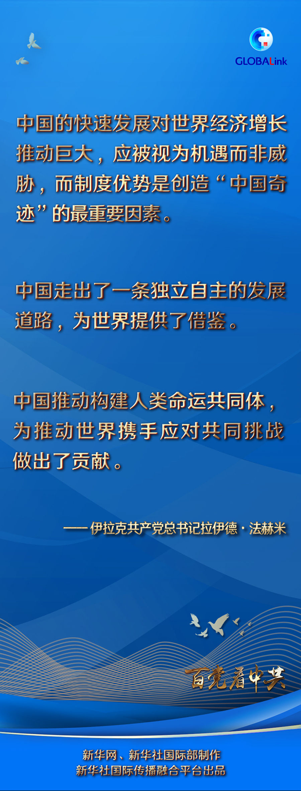 在中國共產黨成立100周年之際,法赫米對中共取得的偉大成就致以誠摯祝賀。他表示,在中共帶領下,中國在眾多領域實現了大跨步發展。