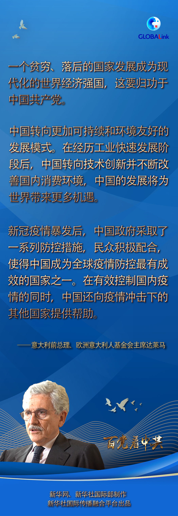 達萊馬先后擔任過意大利總理和外長等職,從20世紀70年代起多次訪問中國,見證了幾十年來中國的發展。