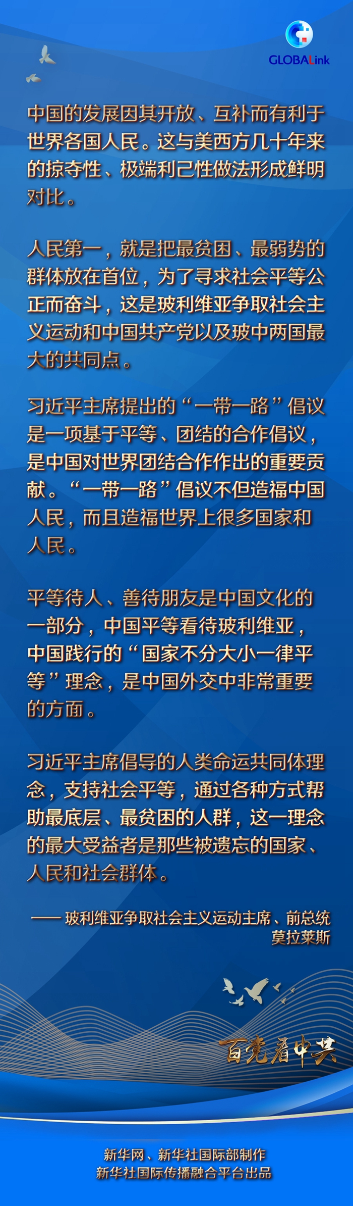 莫拉萊斯指出,習(xí)近平主席倡導(dǎo)的人類命運共同體理念,支持社會平等,通過各種方式幫助最底層、最貧困的人群,這一理念的最大受益者是那些被遺忘的國家、人民和社會群體。