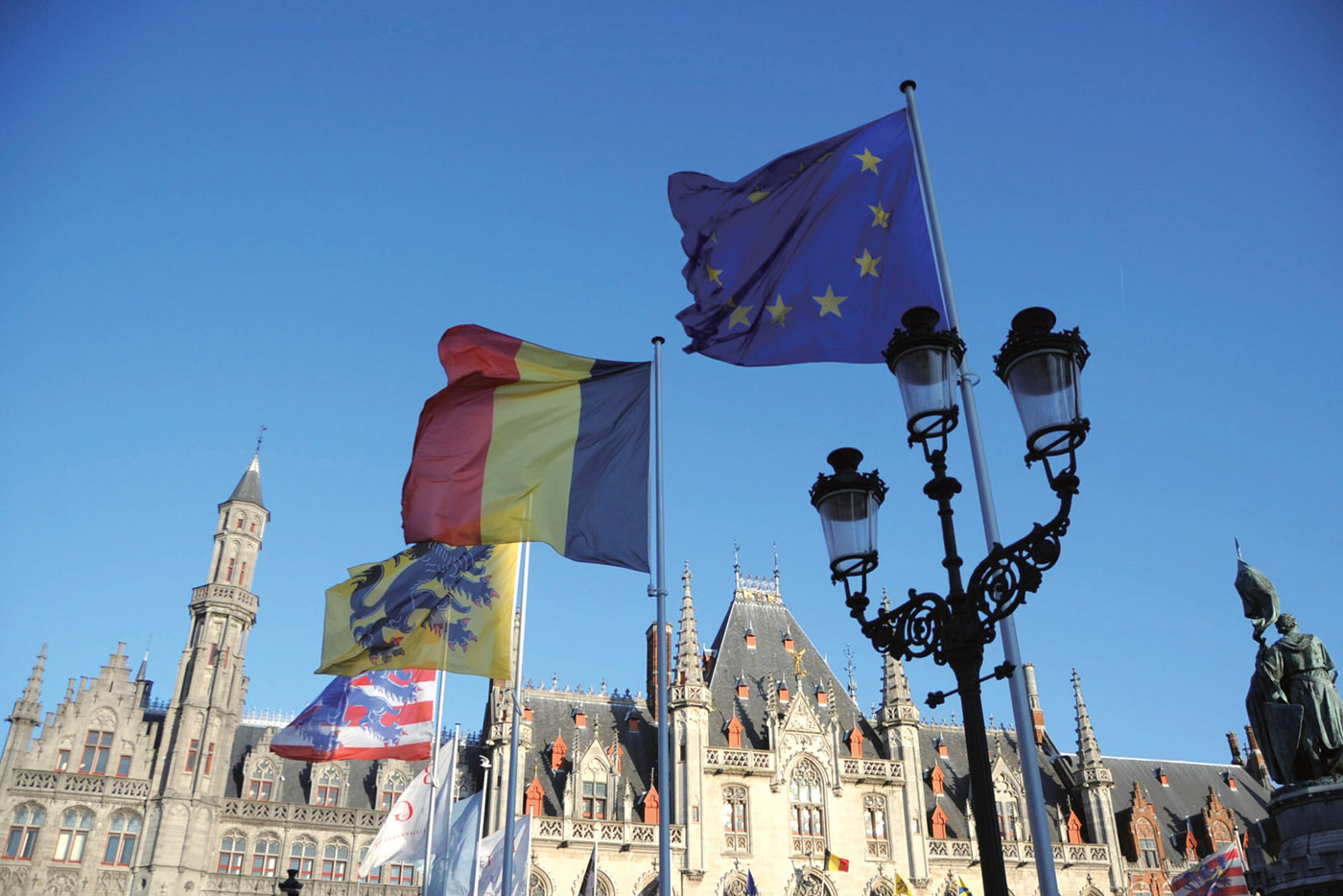 布魯日位于比利時西北部弗蘭德平原,距北海14 公里,中世紀曾是歐洲著名的港口和商埠。最初統(tǒng)治者為了抵御海盜在這里修建了城堡,后來城堡漸漸擴大為城市。“布魯日”是弗拉芒語“Bruges”的音譯,意為“橋”,準確地講,布魯日應叫作“橋城”。