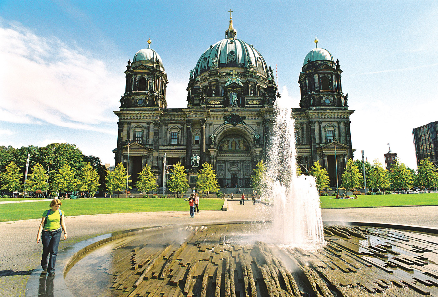 當然還有建筑,無論是戰(zhàn)后加了玻璃穹頂?shù)陌亓值蹏h會大廈,還是雙塔高聳入云的科隆大教堂,都令人贊羨不已。時任新華社柏林分社社長的黃泳,在送代表團赴法蘭克福的路上,還陪同我們順訪了勃蘭登堡州的首府波茨坦,那里是德意志昔日的皇宮。方圓290 公頃的皇家園林里,有普魯士國王腓特烈親自設計的夏宮“無憂宮”,有夏洛騰豪夫城堡和奧蘭捷利行宮,大樹參天的園林深處是堂堂威勢的新皇宮,廊柱巨大、雕塑眾多的巴洛克式宮殿里,裝飾奢華的廳堂臥室多達200 余間。