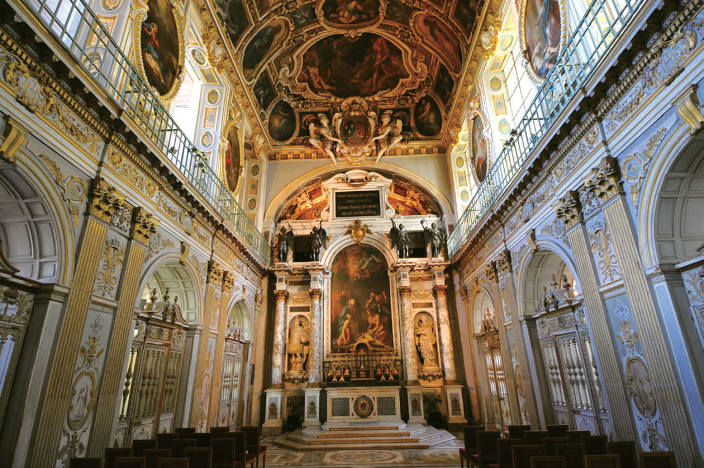 有新華社巴黎分社社長鄭春陪同,參觀楓丹白露博物館那天,館方特意請我們看了一個平日不大開放的展室。這個房間在行宮一樓,一扇不起眼的小門,似乎從沒有觀眾光顧,顯得門庭冷落。誰知推門亮起燈,里面卻別有洞天,一派金碧輝煌。
