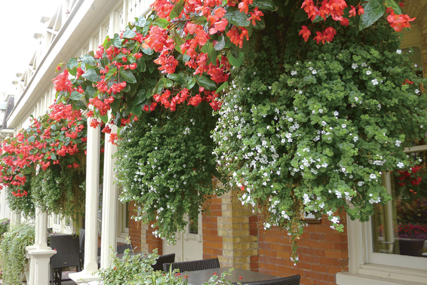 在普吉島的珍珠村飯店,早餐的花園餐廳面對椰樹環(huán)繞的一池碧水。讓人稱奇的是攀援植物綴編成團團簇簇的鮮花屋頂,遠遠看去像層燒紅的早霞。