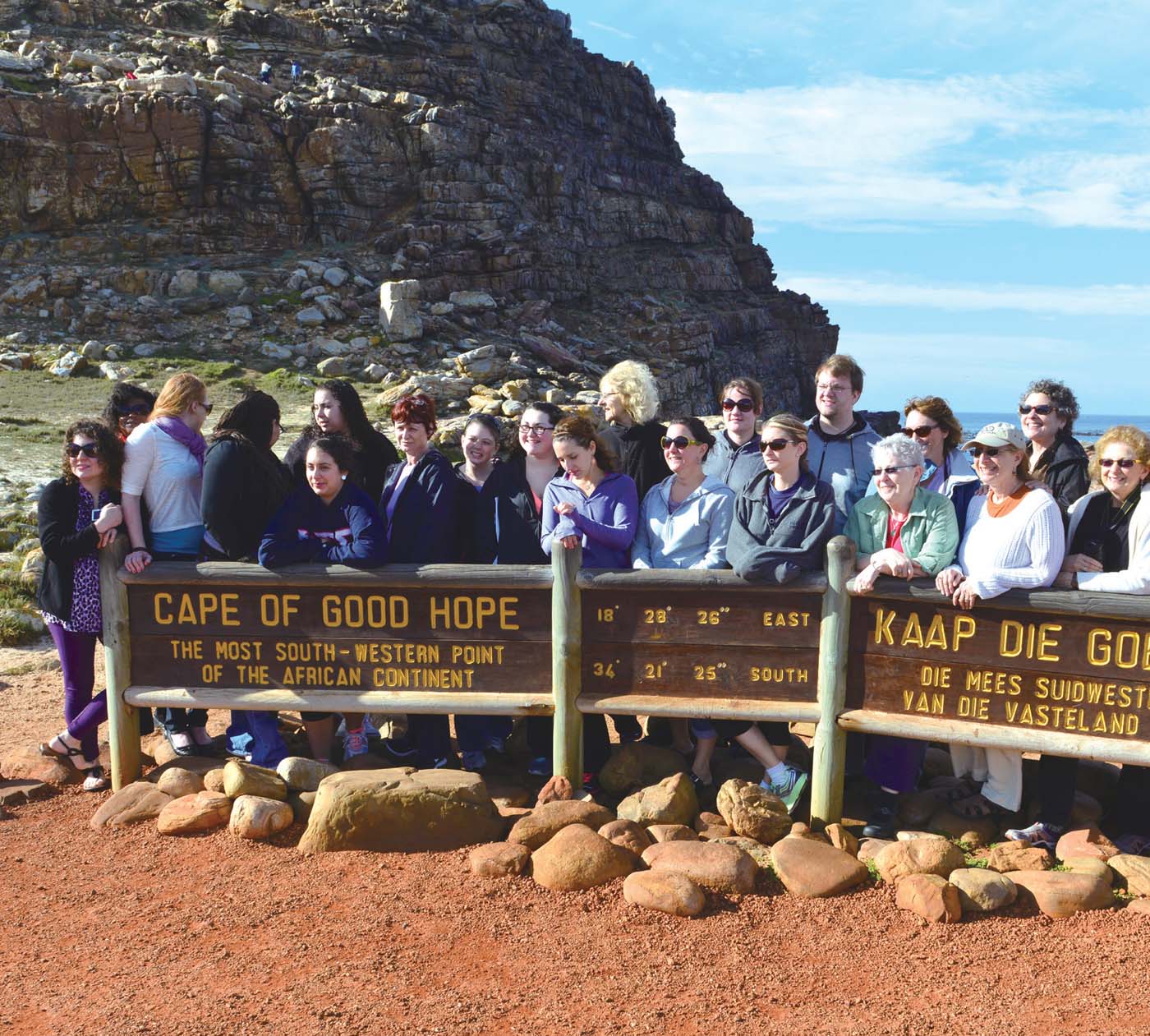 我們來到好望角這天,海面上水波不興,陽光和煦。站在礁巖上拍照,似乎沒有幾艘輪船駛過,連游人都很少光顧。誰曾想,就是這樣一個地球的偏僻角落,卻在人類航海史上占有如此重要的一頁,那深藍的天空下,開闊的水域里,嶙峋的崖石旁,風聲尖厲地呼嘯,仿佛能從中聆聽到歷史悠長的回聲……