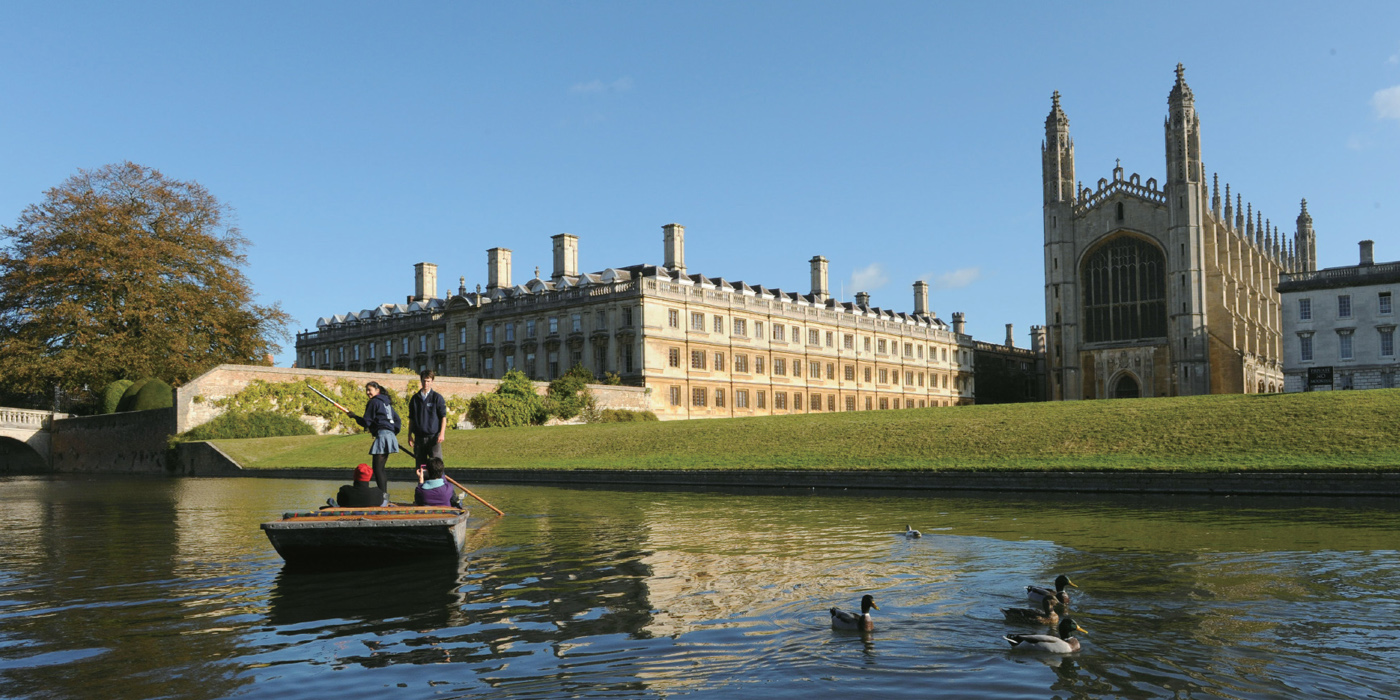 康橋就在劍河上,劍河是一條穿繞劍橋大學城的河。當我如愿以償?shù)刈夏局郏谇宄阂姷椎膭由蟿澾^時,綠草如茵的岸邊閃現(xiàn)一座中世紀哥特式的歐洲古城堡,這就是大名鼎鼎的國王學院,從這里,走出過多位英國首相、殖民地總督和諾貝爾獎獲得者。